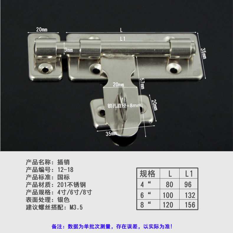 斯勃锐五金不锈钢加长木门明装插销1218