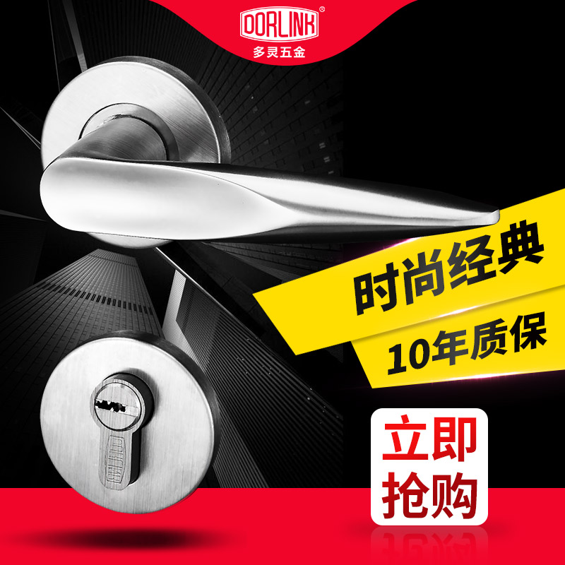 多灵304不锈钢室内门锁詹姆士不锈钢分体银