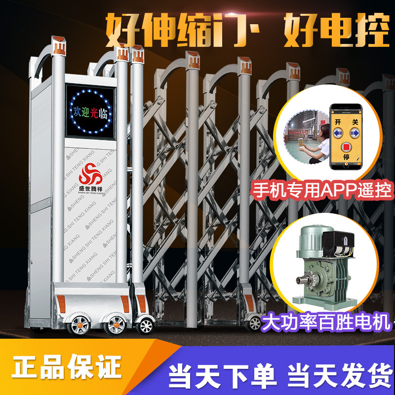 帅强不锈钢电动伸缩门 金刚门一号