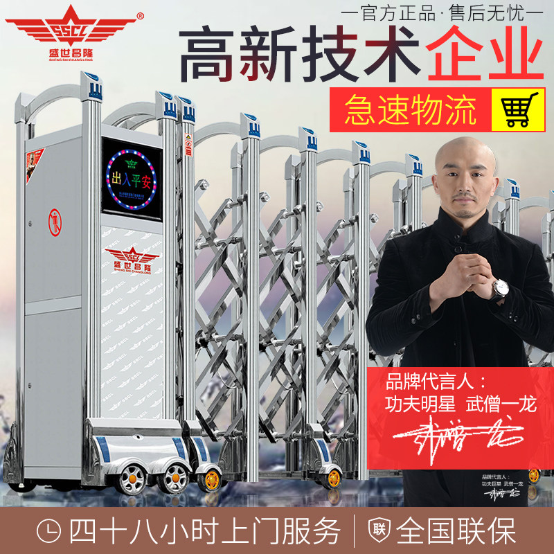 帅强不锈钢电动伸缩门 金刚门一号