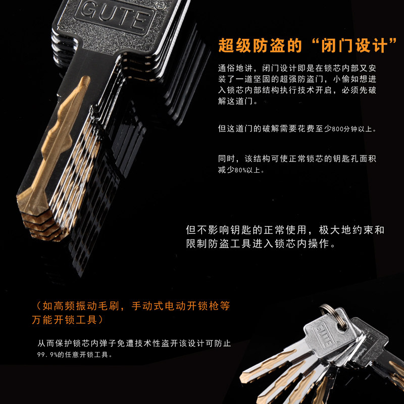 gute固特c级锁芯防锡纸防盗门锁铜C级锁芯