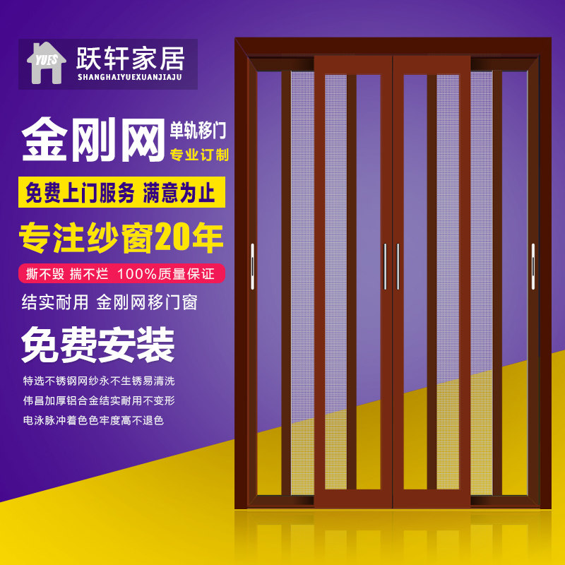 跃轩防盗推拉铝合金防蚊纱窗门隐形防盗纱窗