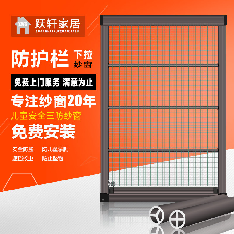 跃轩儿童防护防蚊防盗纱窗上下推拉铝合金纱门