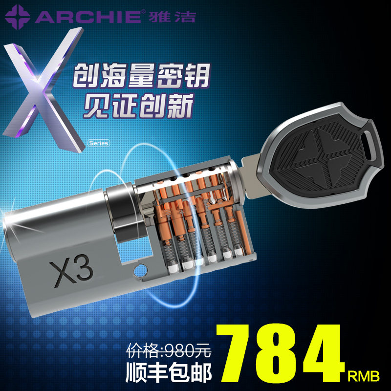 雅洁升级锁芯超b级超c级防盗门锁x3