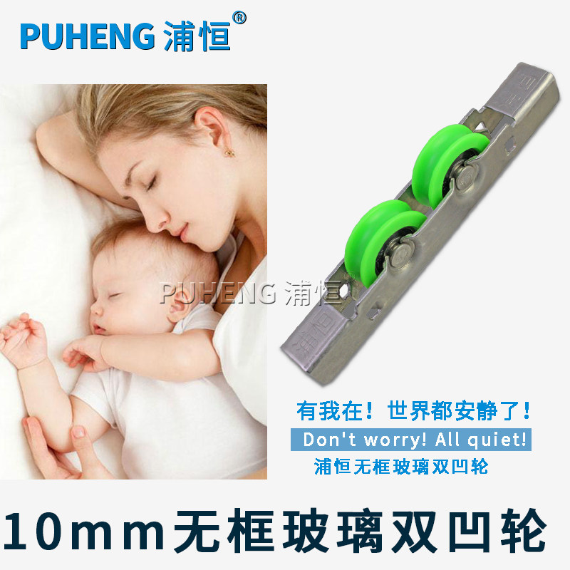 浦恒框门窗滑轮玻璃移门双槽 10mm绿色无框双凹轮