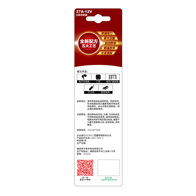 南孚电池27a12v电池卷帘门铃汽27A