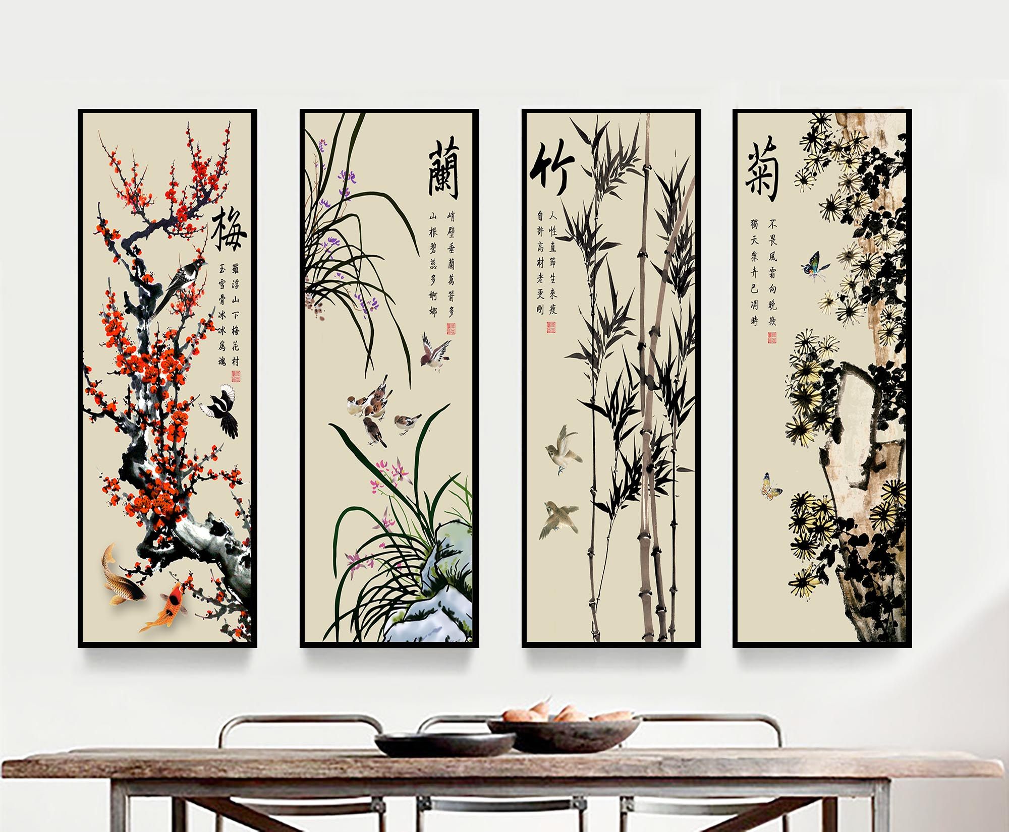 MS水墨梅兰竹菊衣柜移门MS-098tz