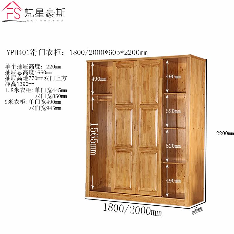 梵星豪斯中式全实木衣柜推拉门 SHE-XJ-429HT