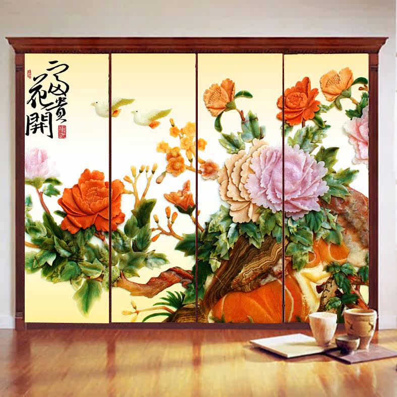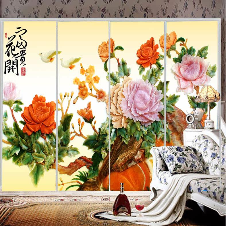 MS自粘玻璃贴膜磨砂玻璃贴纸牡丹