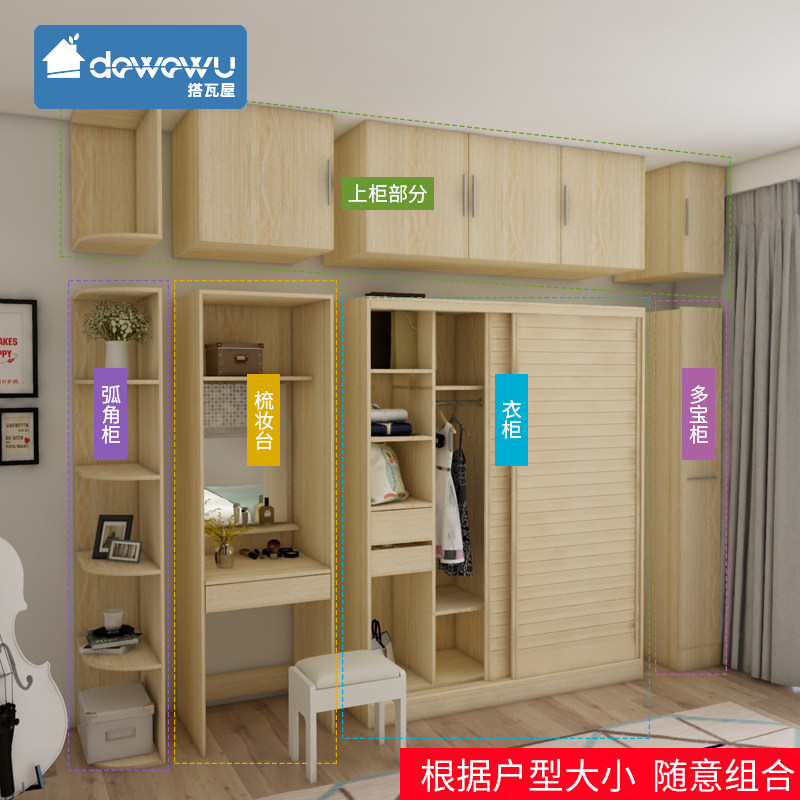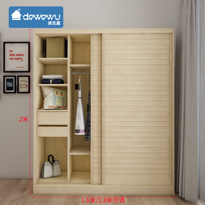 搭瓦屋现代简约推拉门1.6米黄梨橡衣柜