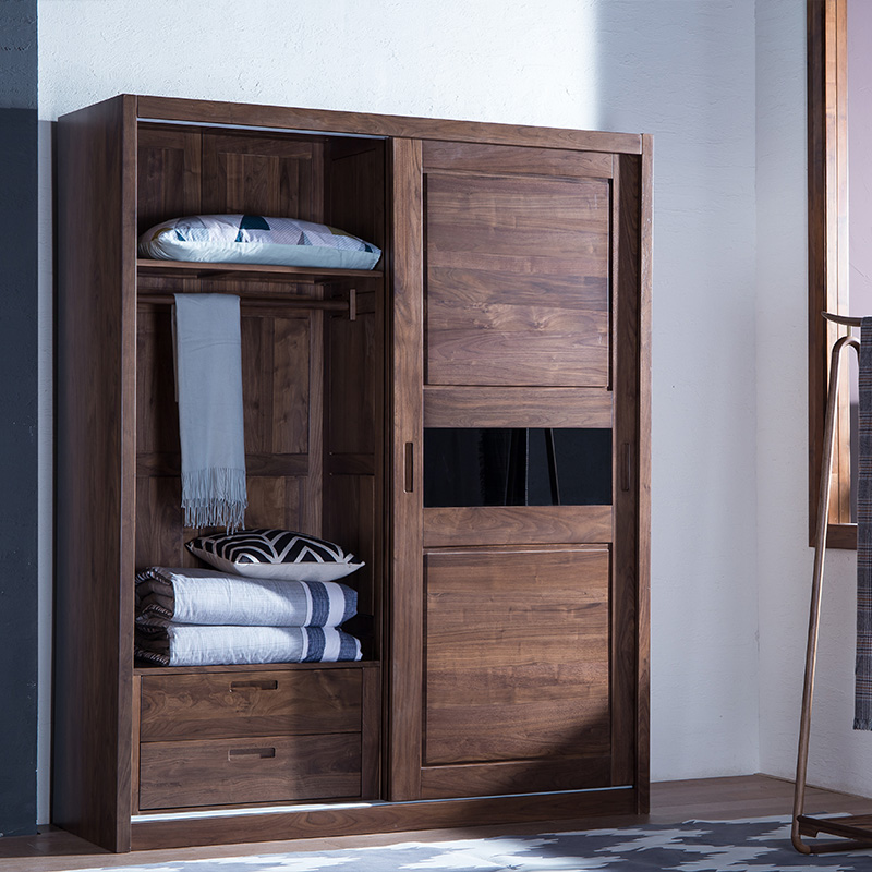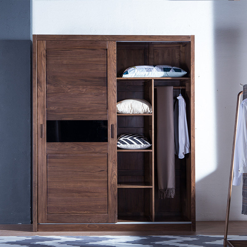 佐必林黑胡桃实木移门衣柜木质柜子WY-022
