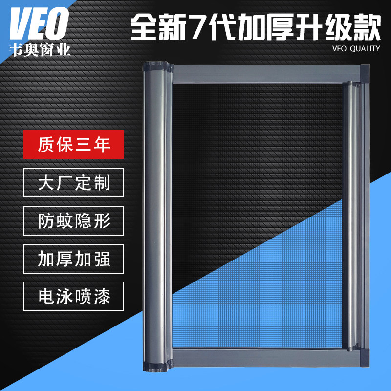 韦奥7代磁性防蚊推拉回卷铝合金隐形纱窗
