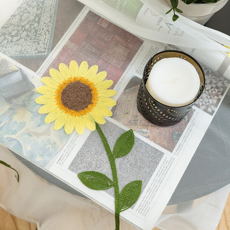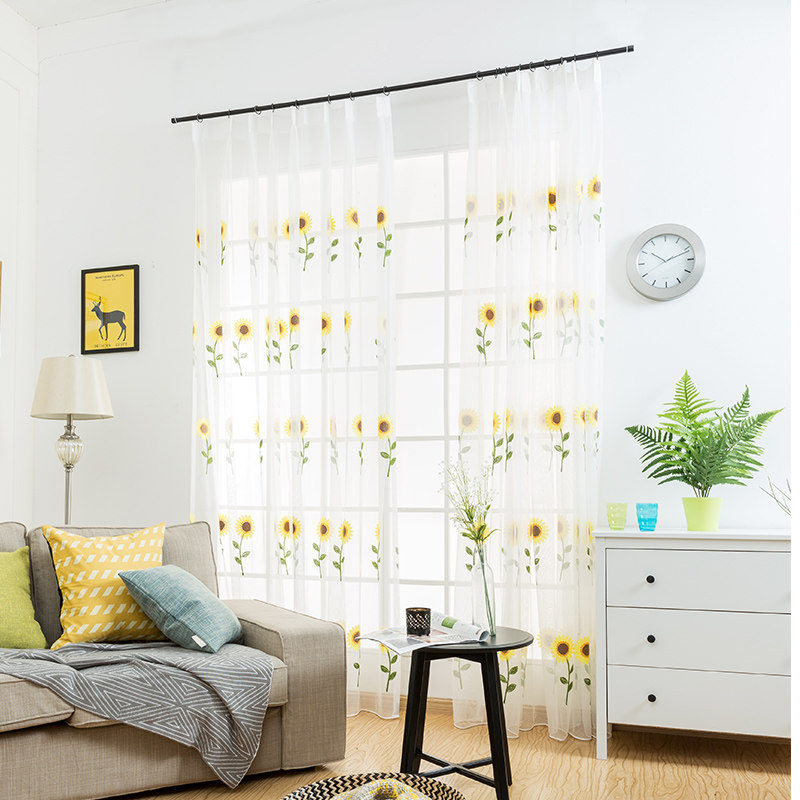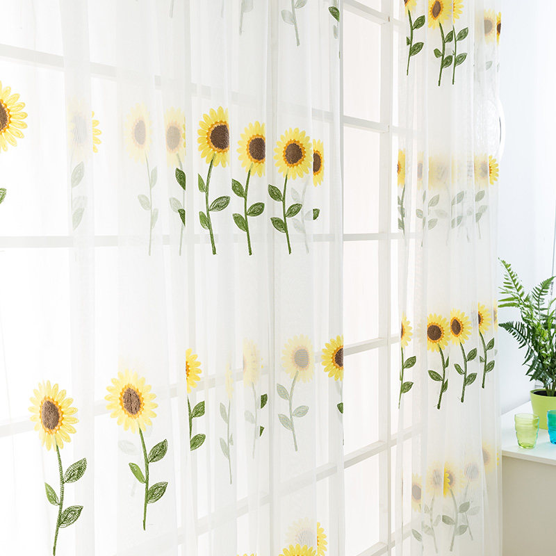 金蝉田园绣花纱窗纱纱帘飘窗落地帘窗纱半遮光向日葵