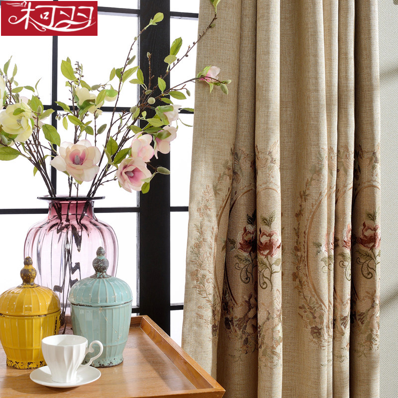 柯羽绣花窗帘仿麻窗帘镜面绣花亚麻