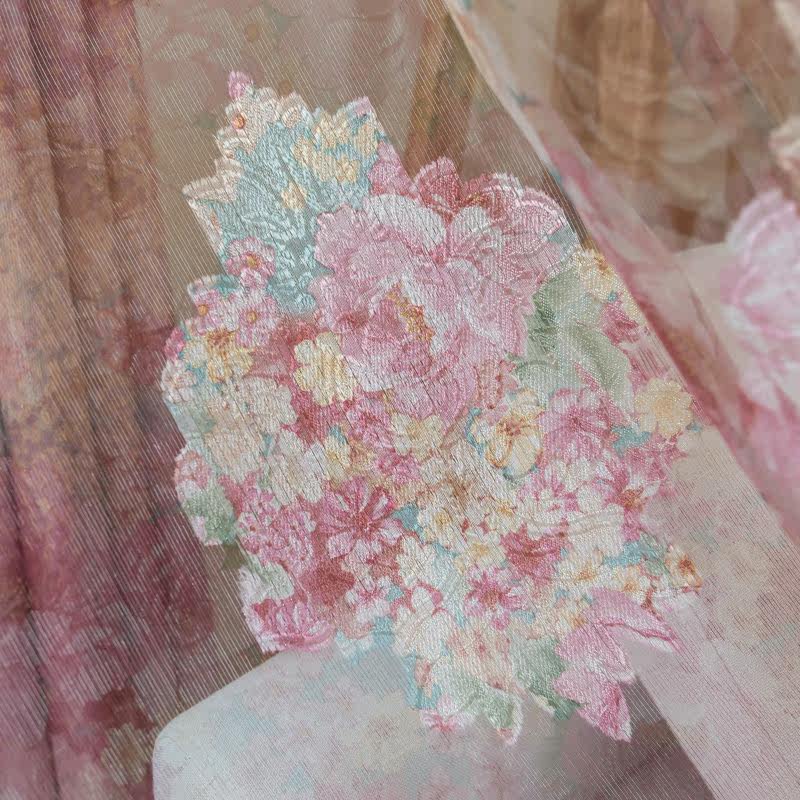 春之南现代田园印花竹节棉提花窗帘CZN-春暖花开