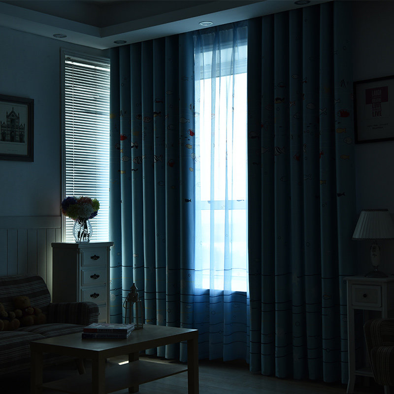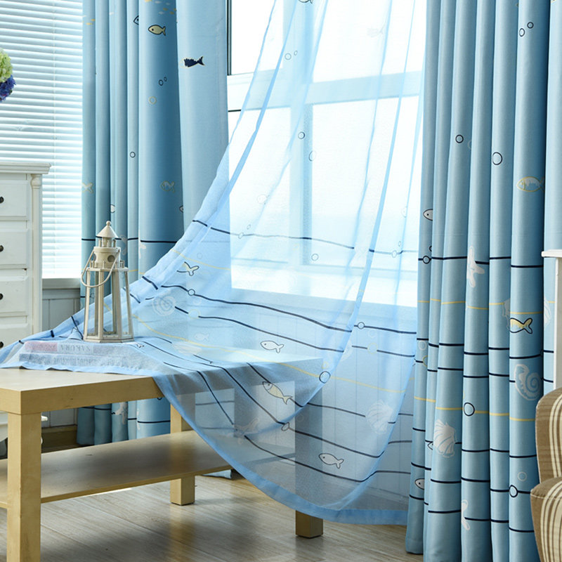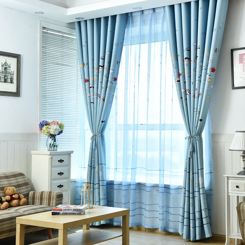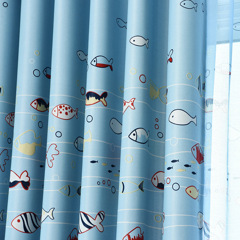 春之南全遮光卡通印花窗帘纱海底小鱼