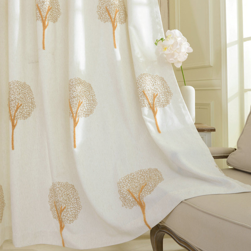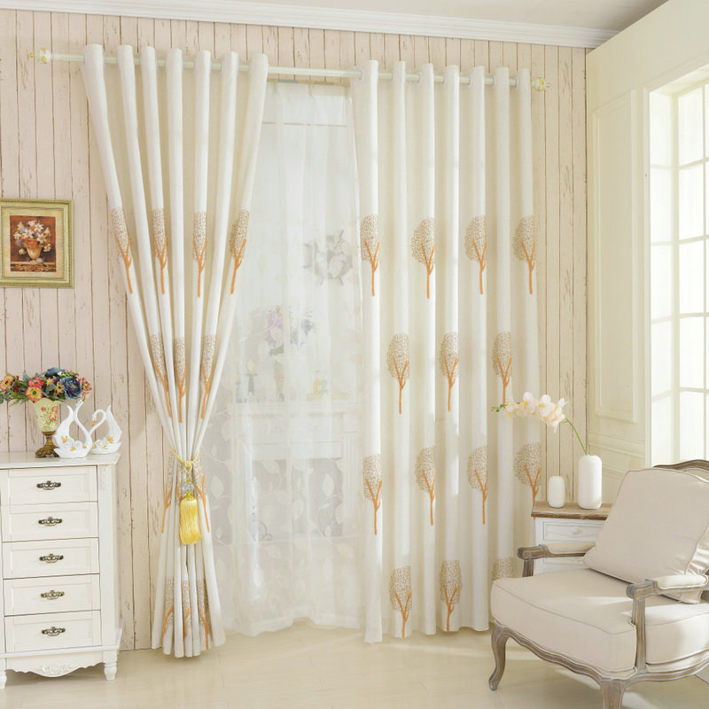 春之南美式田园绣花亚麻风落地窗CZN-幸运树