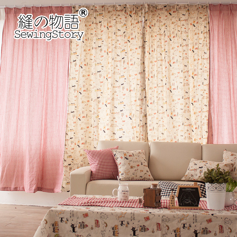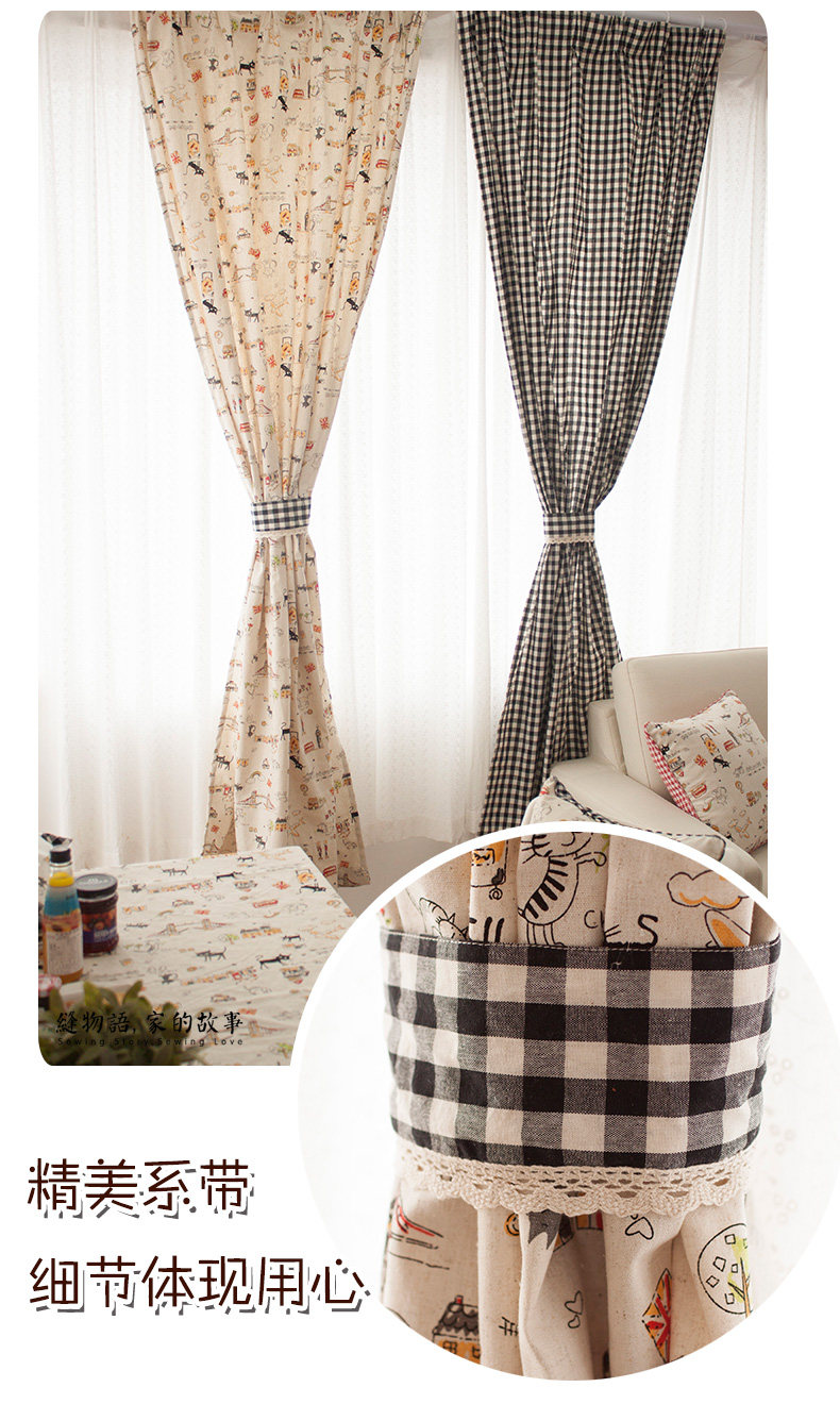 缝物语猫游记棉麻落地窗帘A42CT075