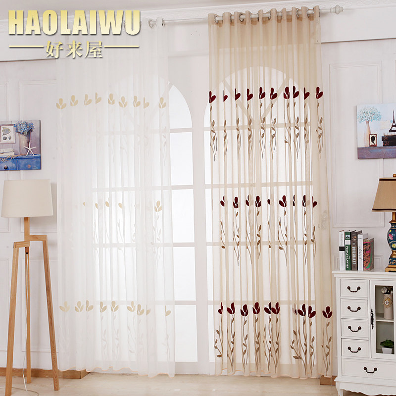 好来屋涤棉绣花窗纱纱帘布料成品飘窗落地窗帘