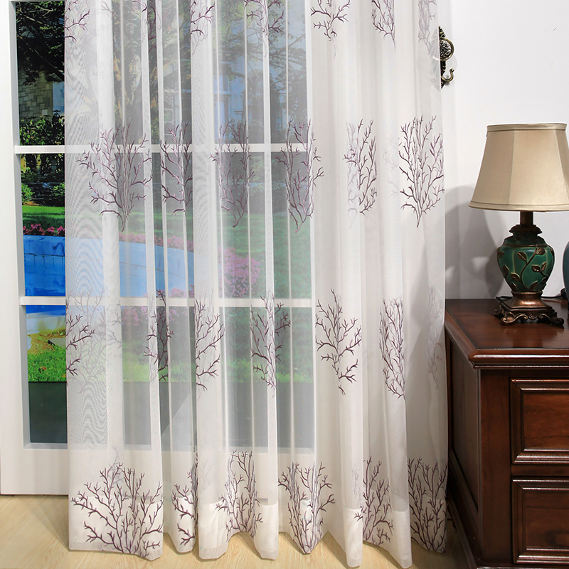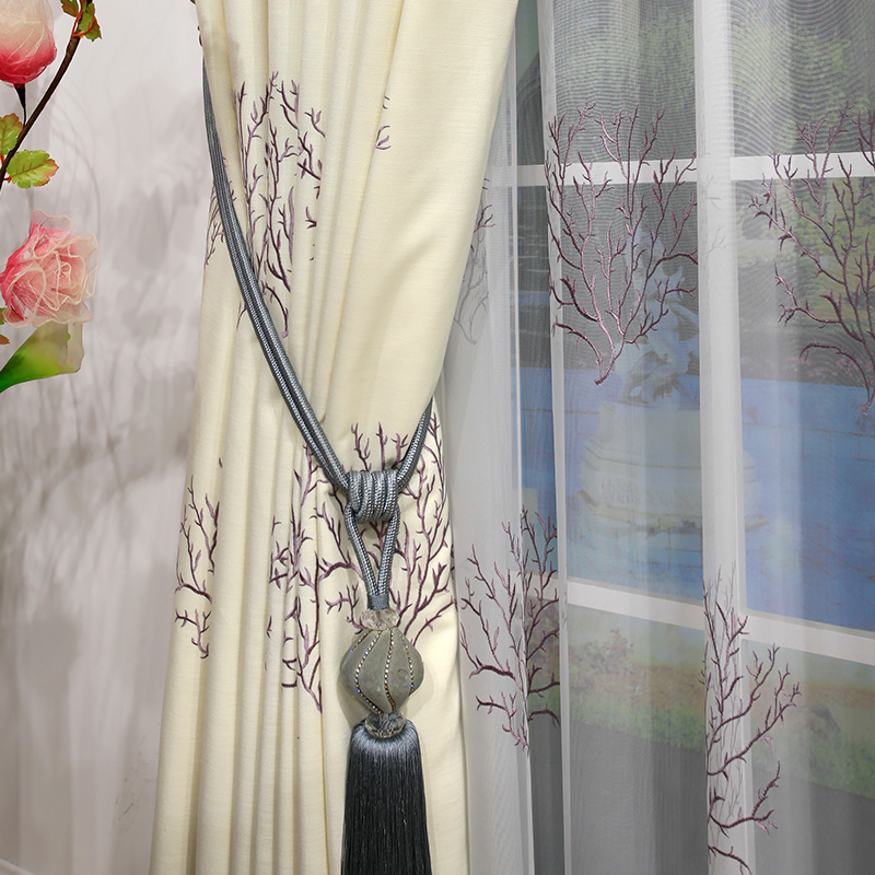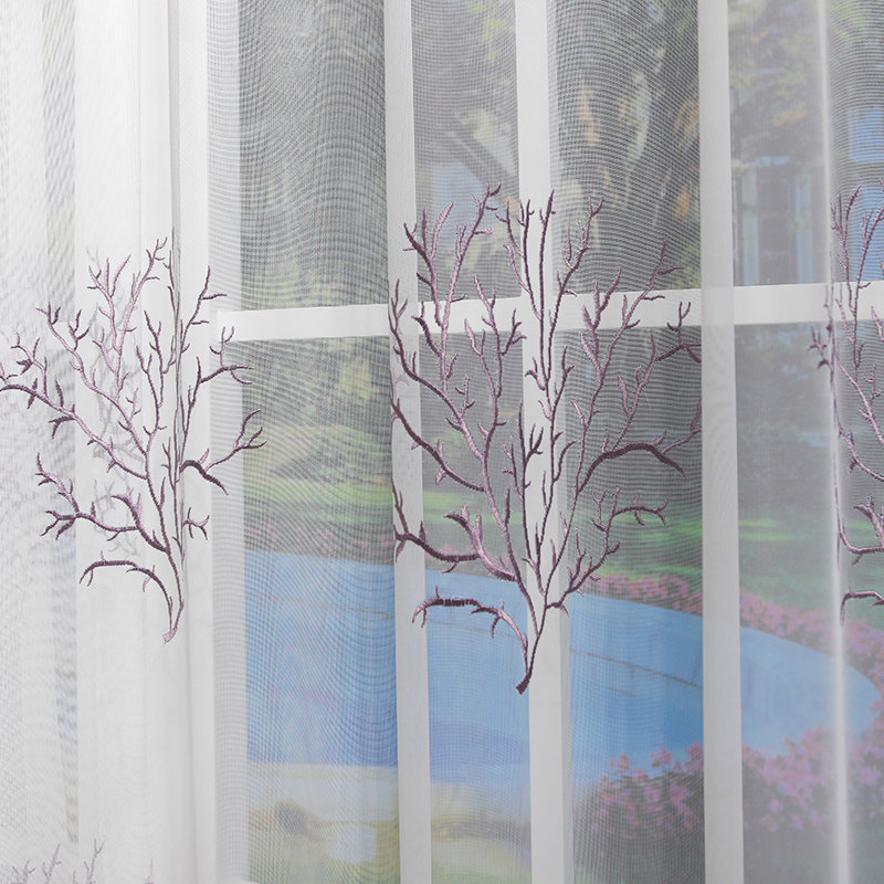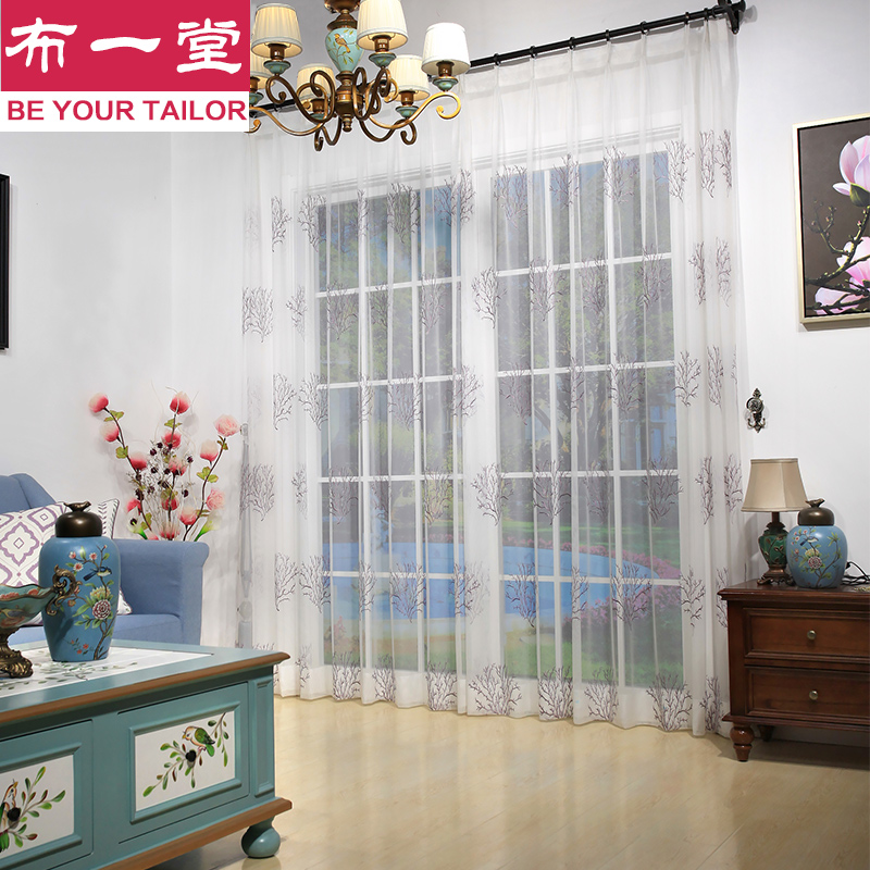 布一堂美式乡村纱帘绣花发财树7#简约落地窗SL007