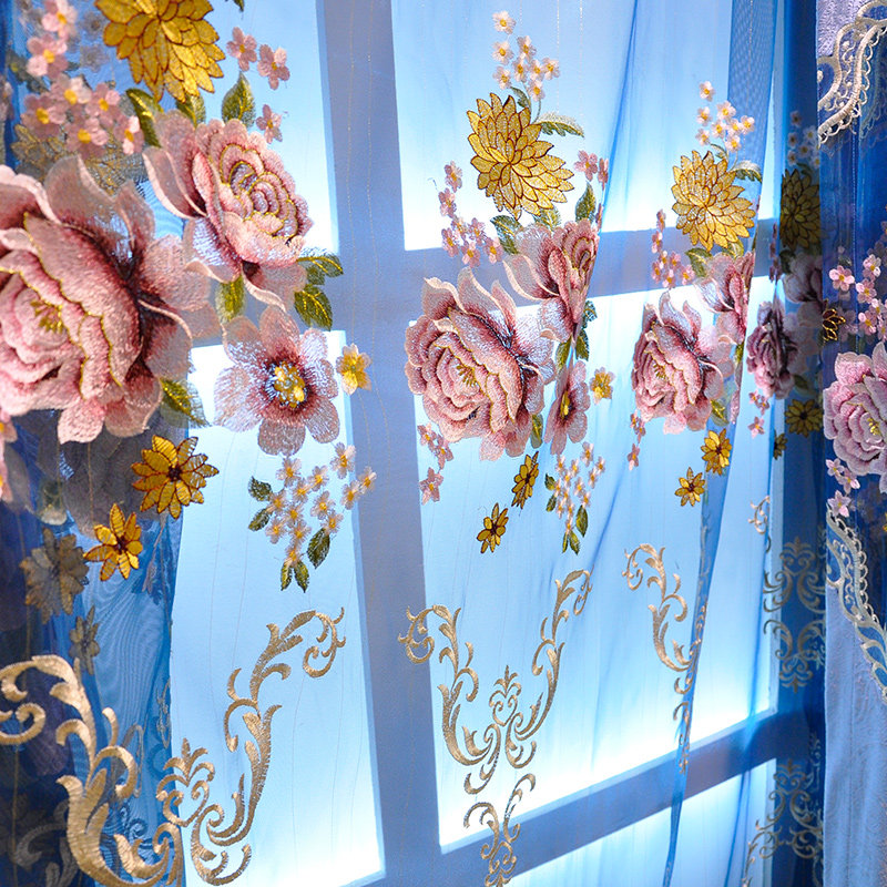 金蝉豪华欧式遮光绣花窗帘花丛丽影1