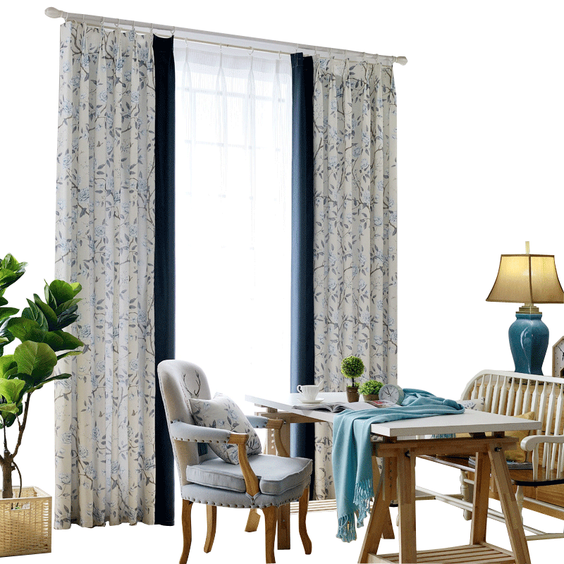 仿亚麻印花窗帘