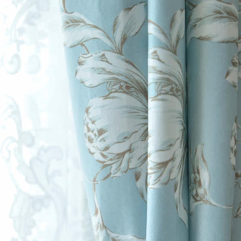 金蝉窗帘成品遮光美式乡村绣花轻奢落地窗静蕾初绽