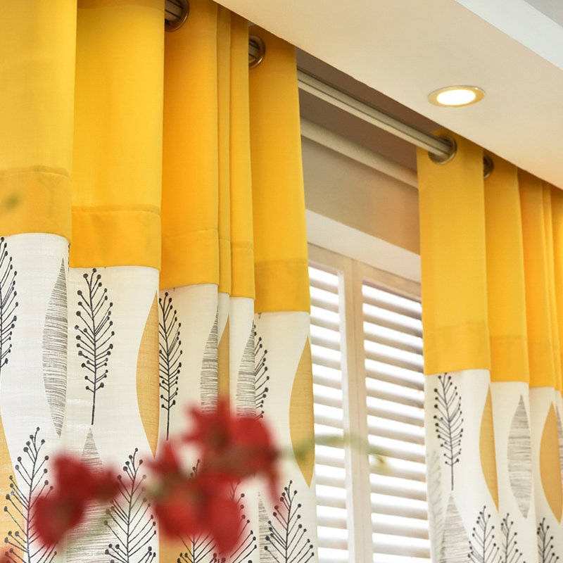 金蝉简约现代遮光窗帘成品布棉麻落地窗飘窗帘叶语