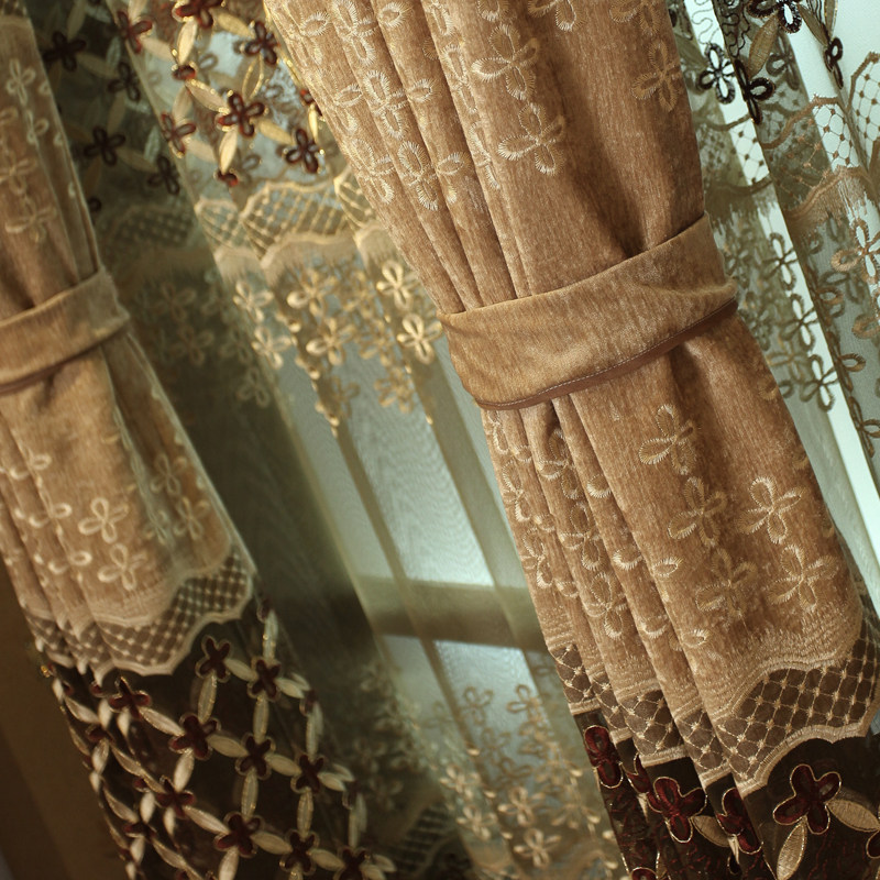 尚名格高档欧式奢华雪尼尔绣花窗帘高档落地窗纱帘