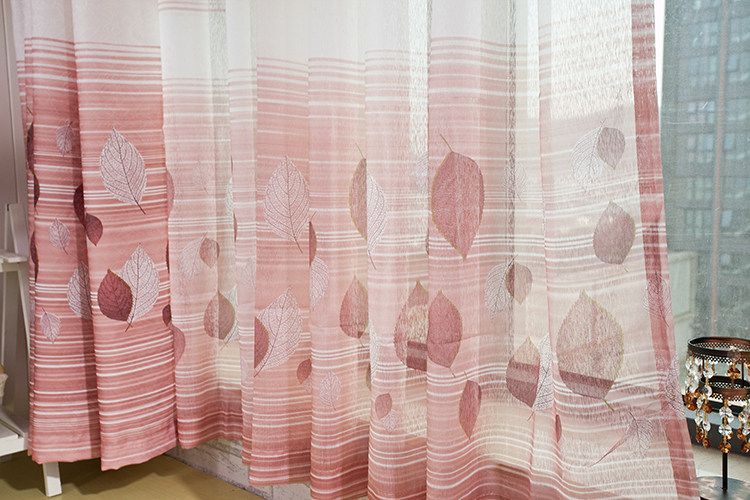 紫柯树叶田园风现代飘窗落地成品半遮光窗帘布可