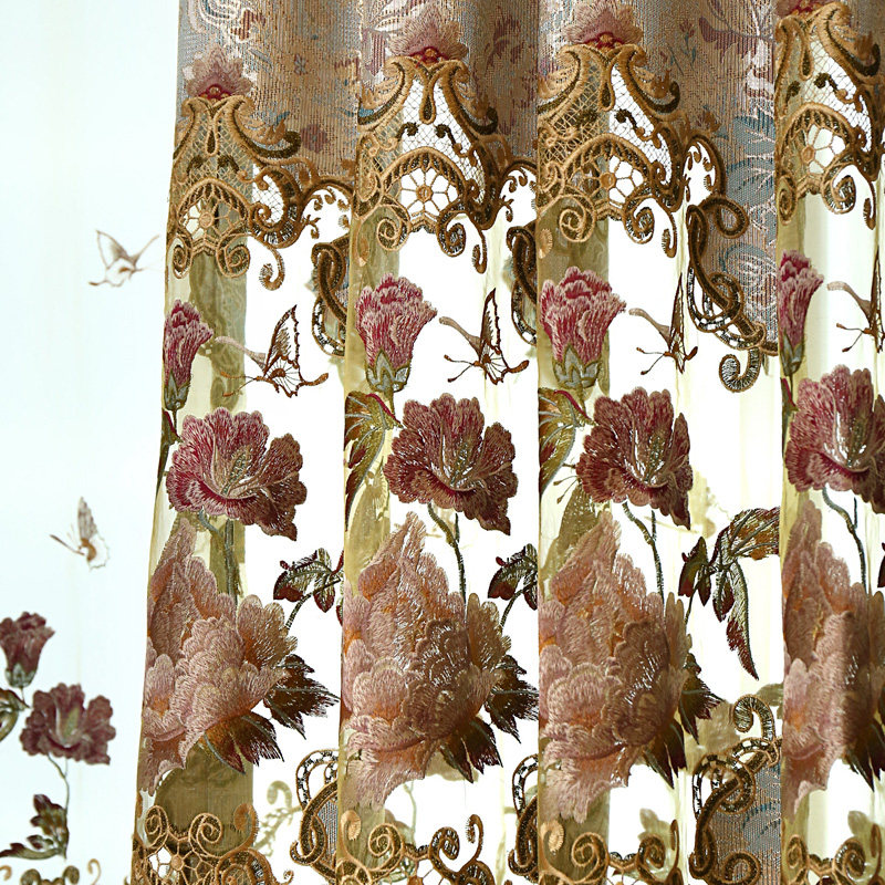 恋织家蝶依飞舞大气刺绣花镂空欧式田园窗帘15667