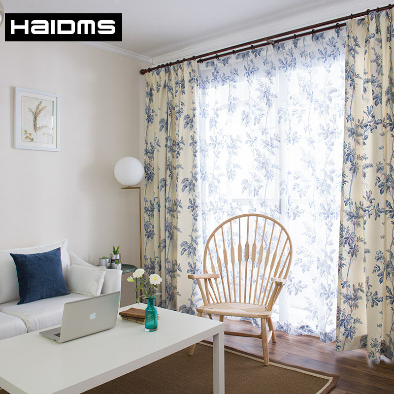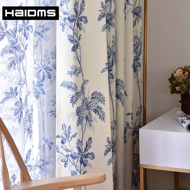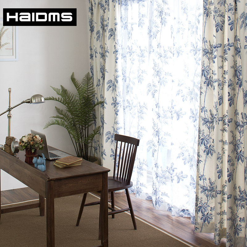 haidms简约宜家田园风格工笔画水墨图案落地窗帘ql