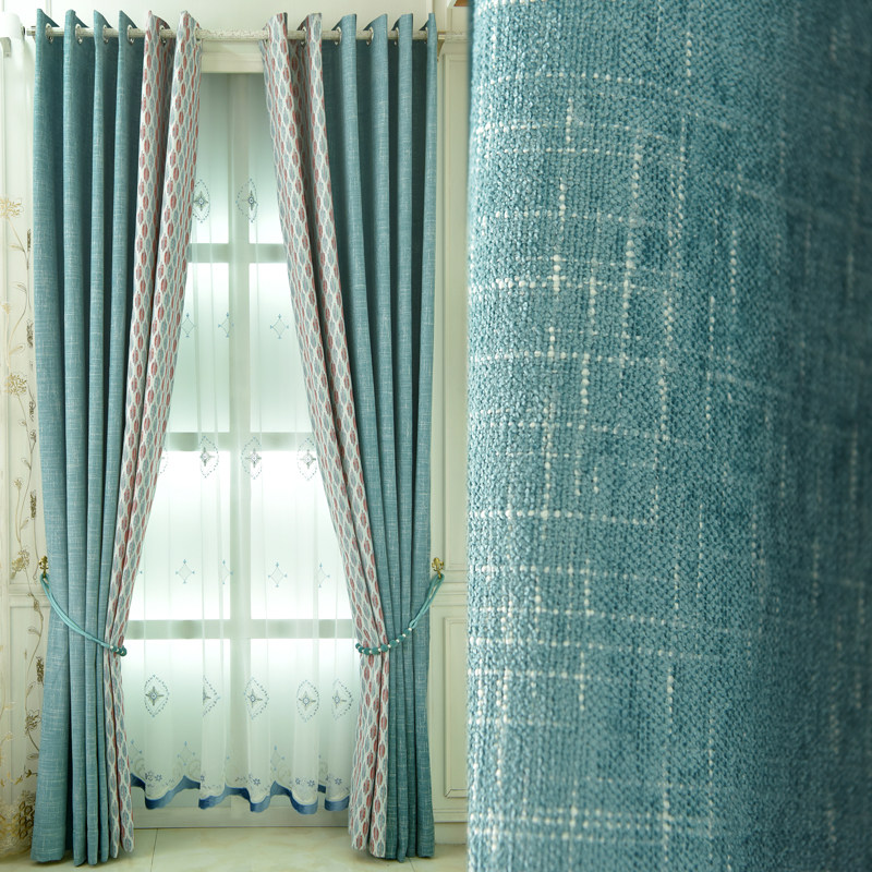 御尚居简约现代棉麻拼接遮光窗帘布鲁斯