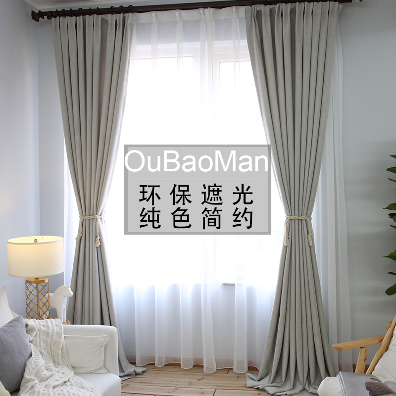 欧宝曼现代简约隔热窗帘纯色麻料7色