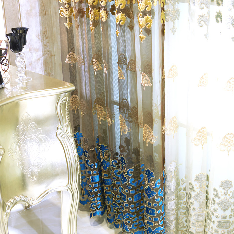 一米欧式书房飘窗激光绣花窗帘塞缪尔斯
