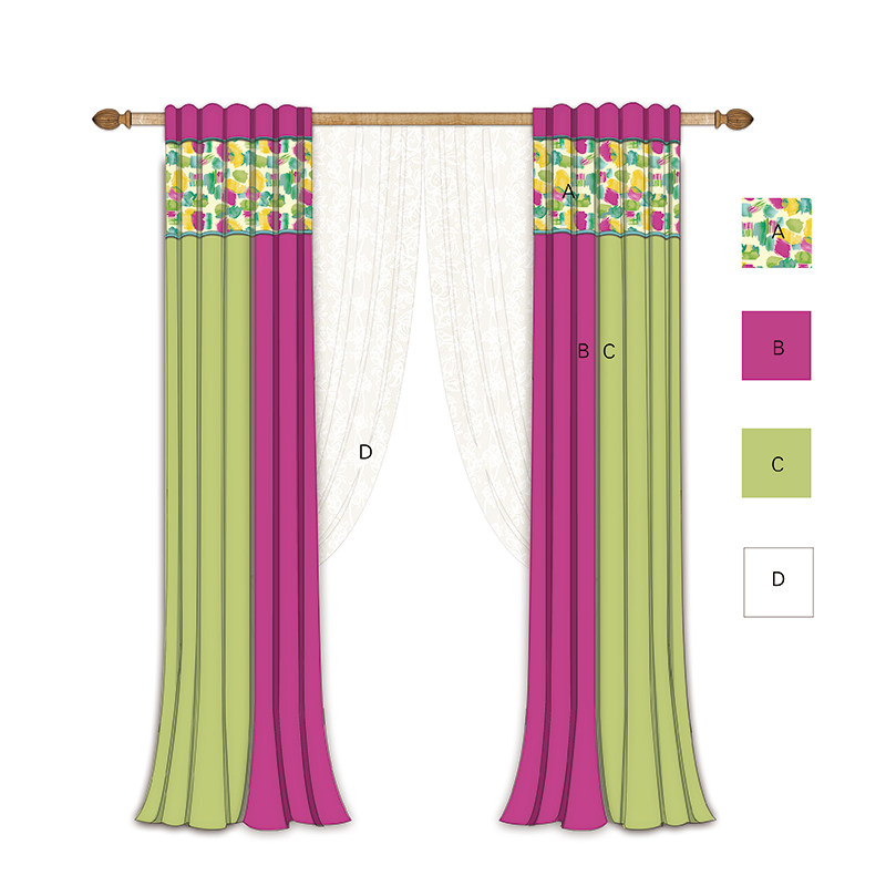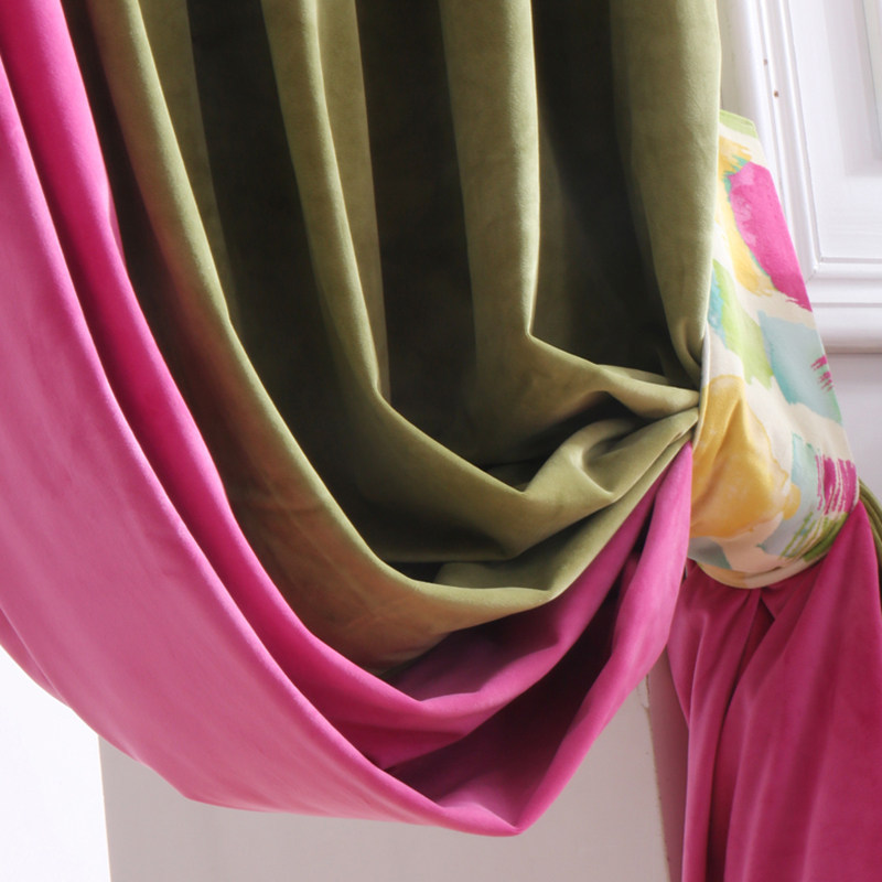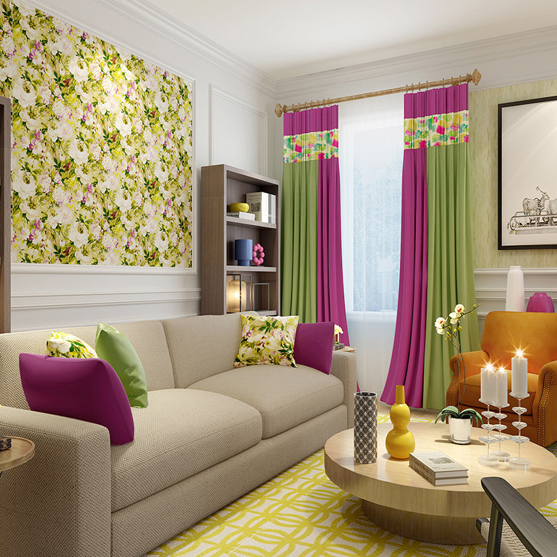 菲空间绒布数码印花窗帘果绿