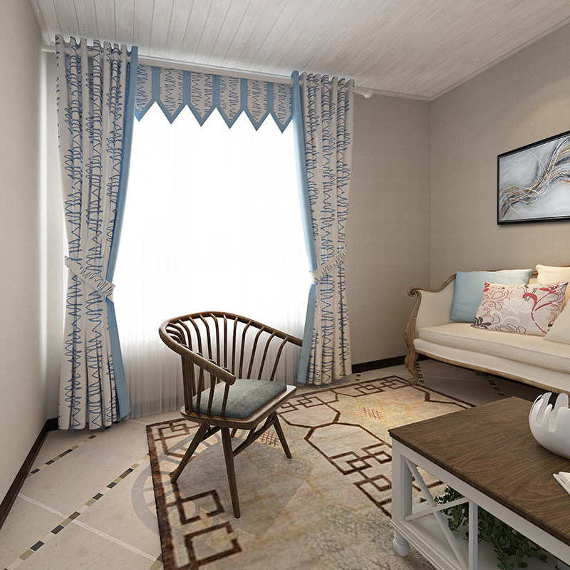 仿亚麻印花窗帘