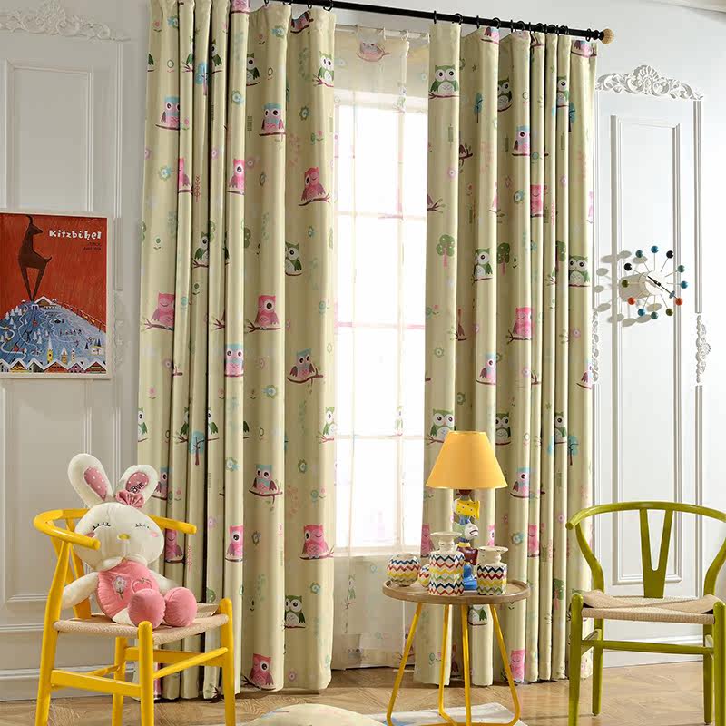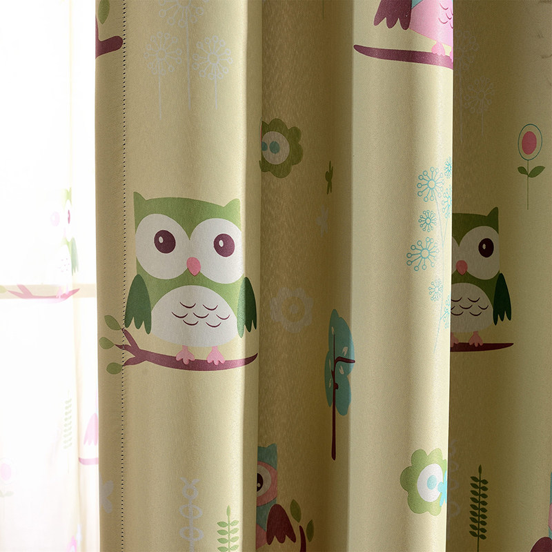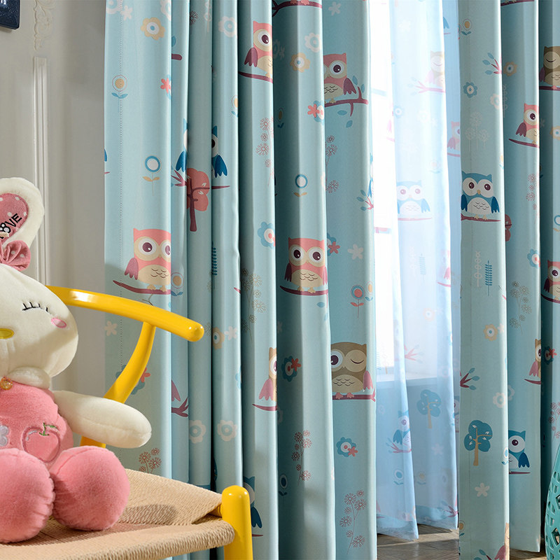 欧宝曼卡通儿童房窗帘男孩女孩可爱窗帘猫头鹰