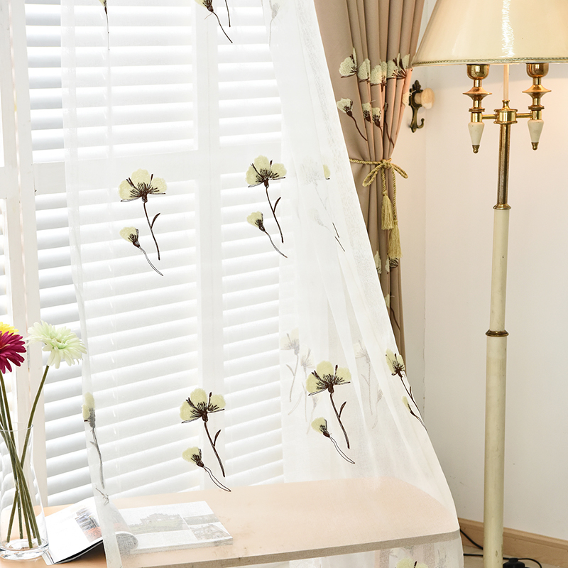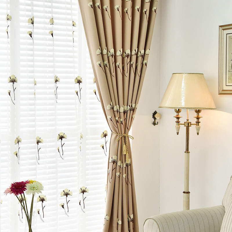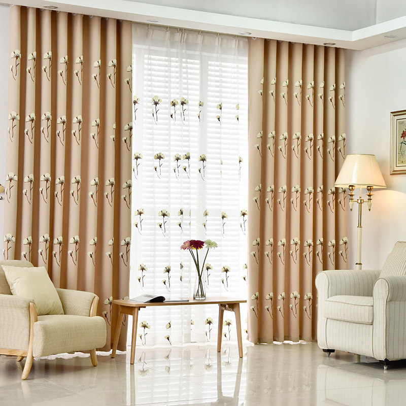 阳光自然风简洁花卉棉绒麻加厚成品全遮光窗帘