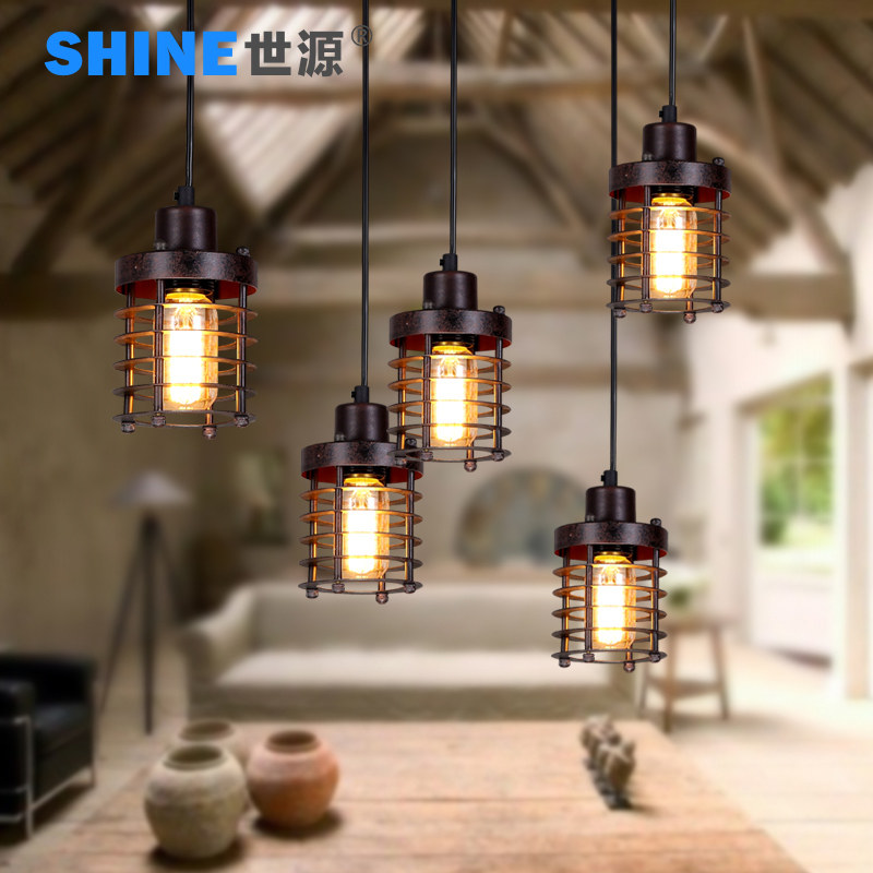 世源书房美式乡村复古创意床头楼梯铁艺吊灯pl7560