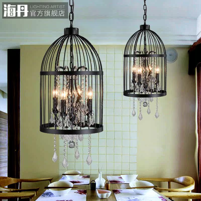 海丹美式复古铁艺水晶鸟笼吊灯D8335