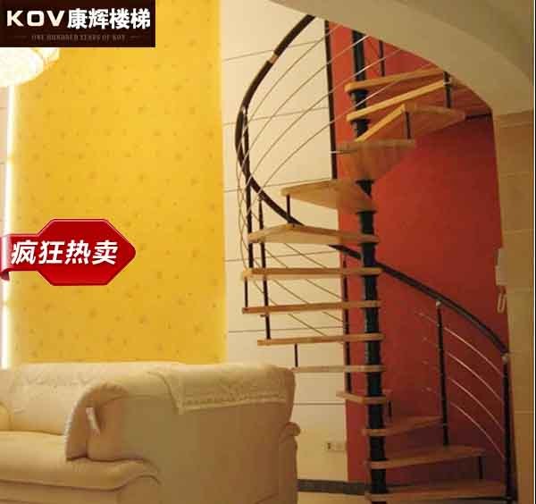 康辉楼梯扶手阁楼旋转钢木整楼梯