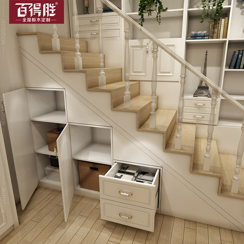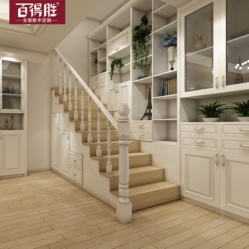 百得胜欧式阁楼实木楼梯扶手欧式楼梯柜定制