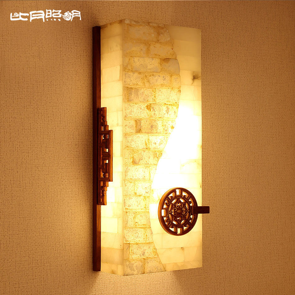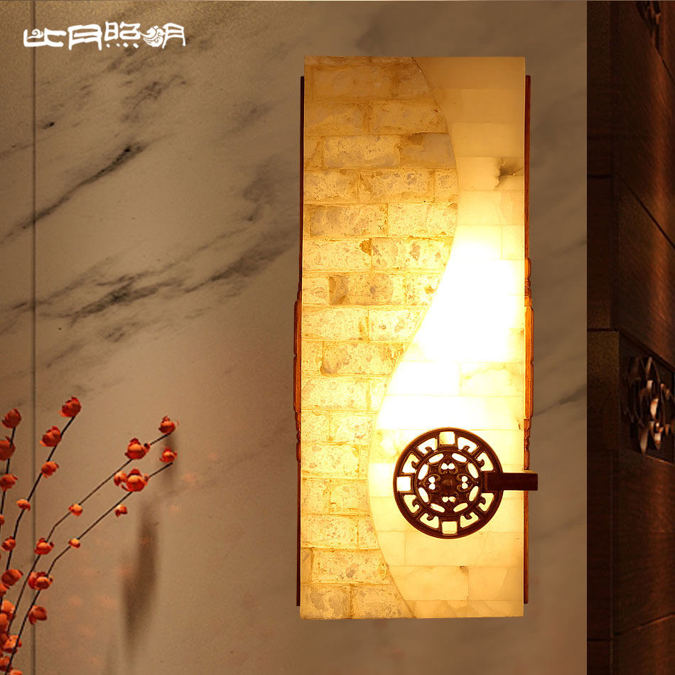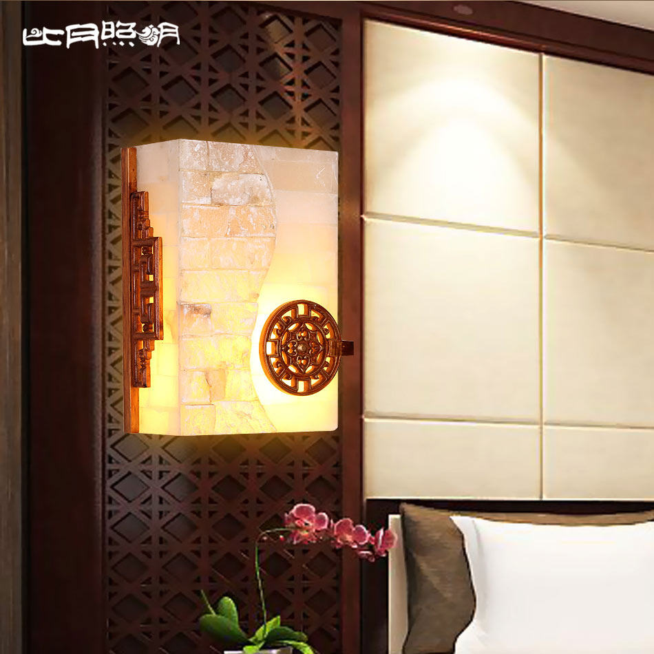 比月中式壁灯书房创意复古楼梯红木云石壁灯6158