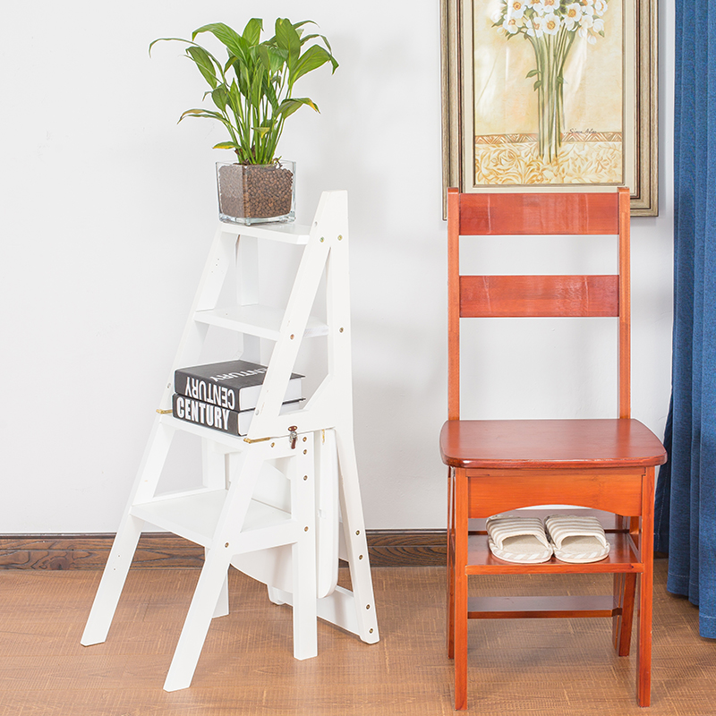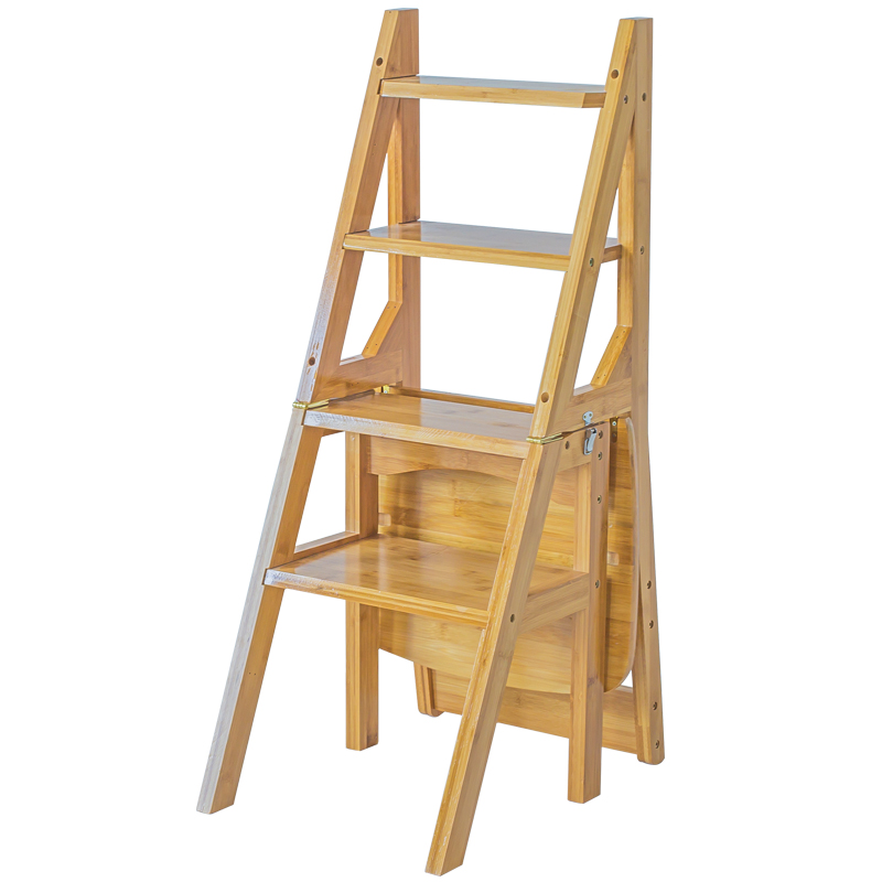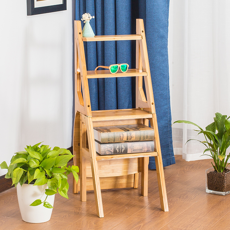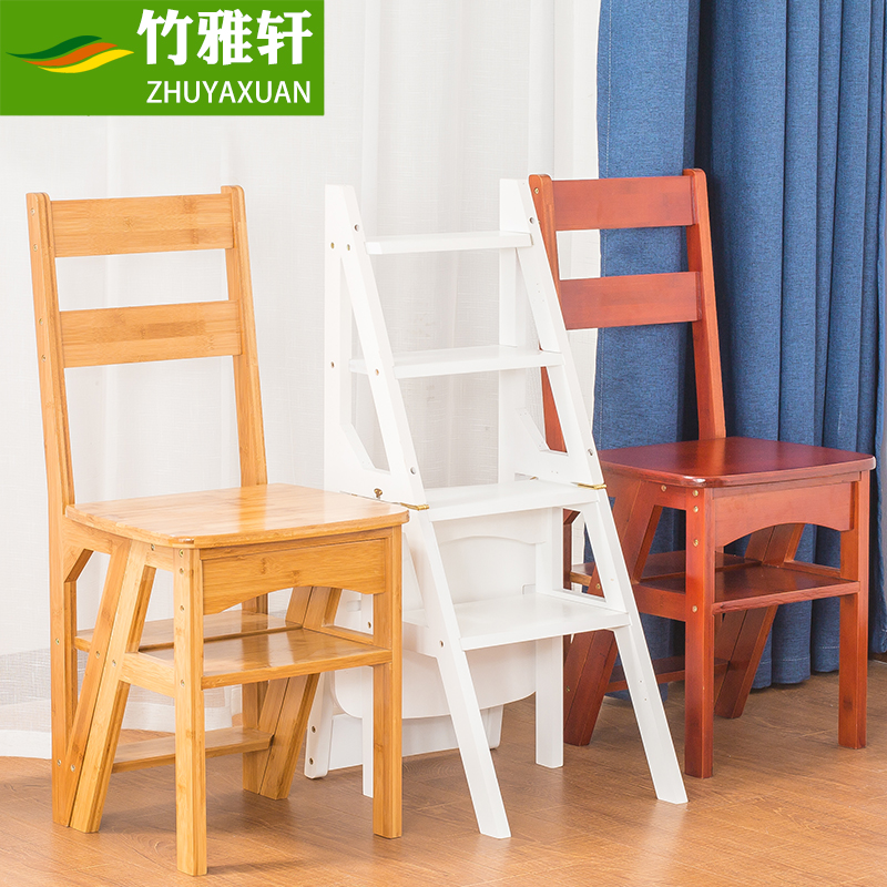 竹雅轩简易家用折叠两用实木梯凳