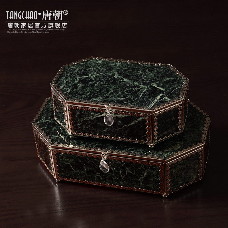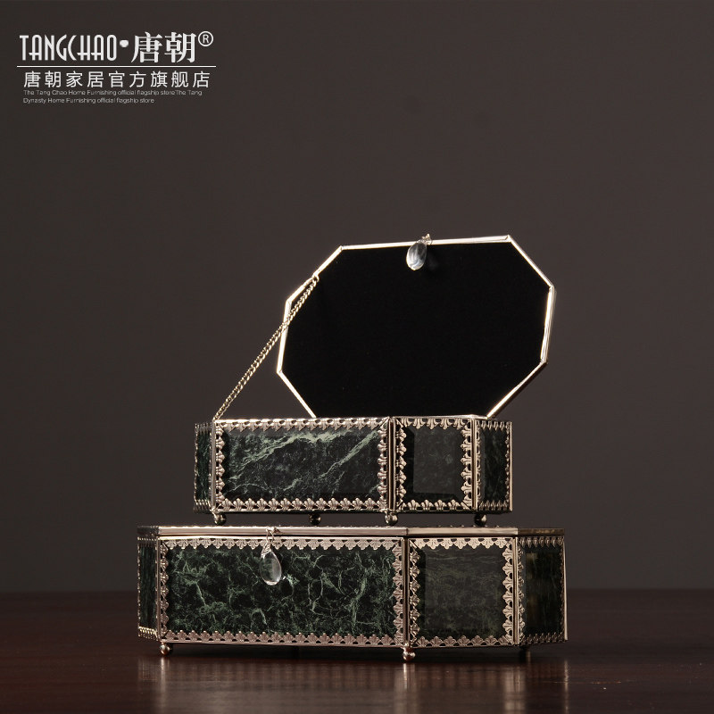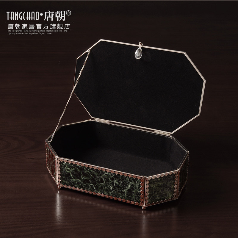 唐朝现代欧式大理石玻璃首饰盒K15102-GN