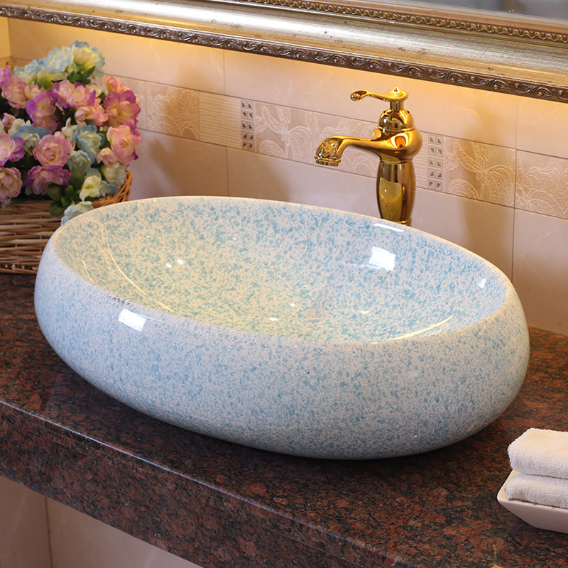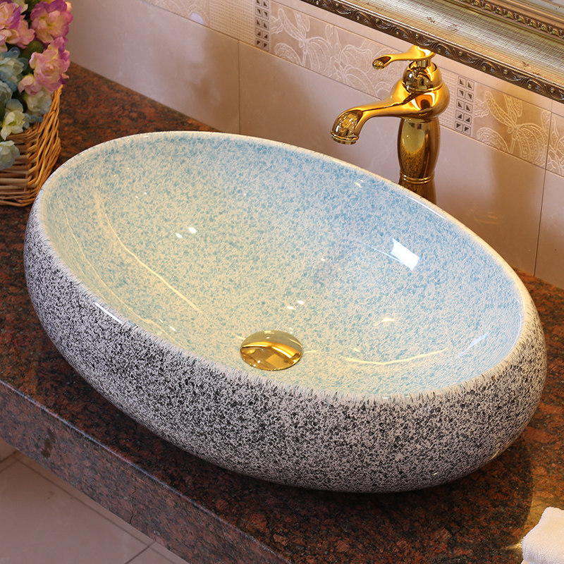 雨泉欧式艺术盆仿大理石天蓝色盆