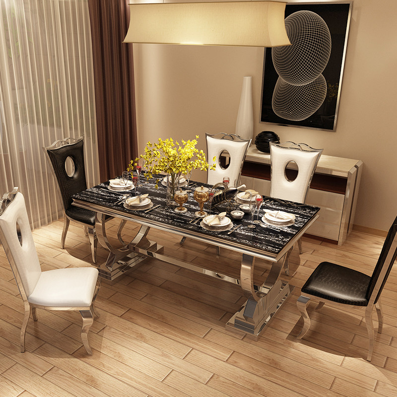 马氏皇庭简约现代不锈钢餐桌T010