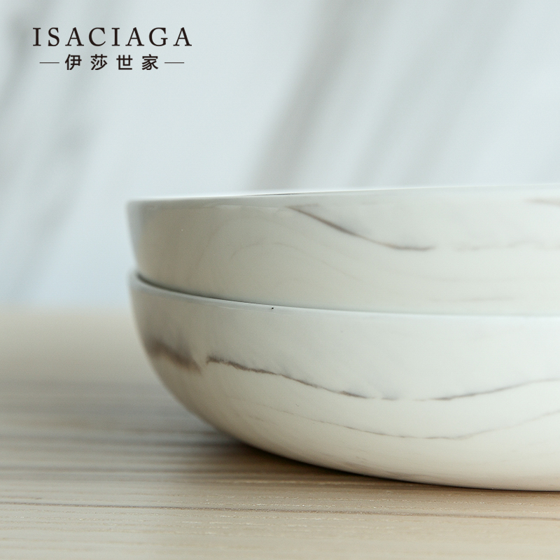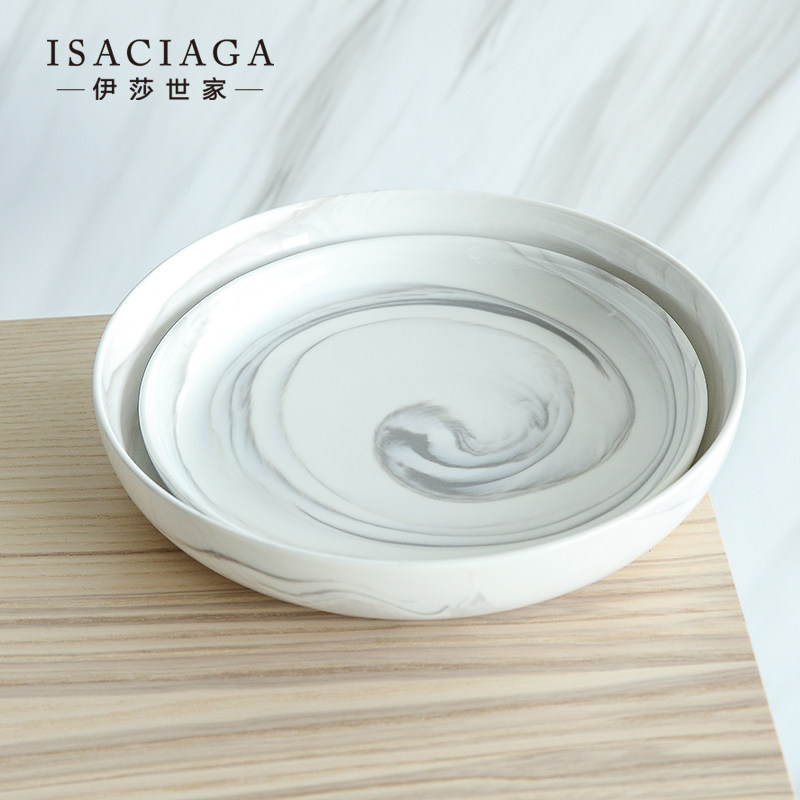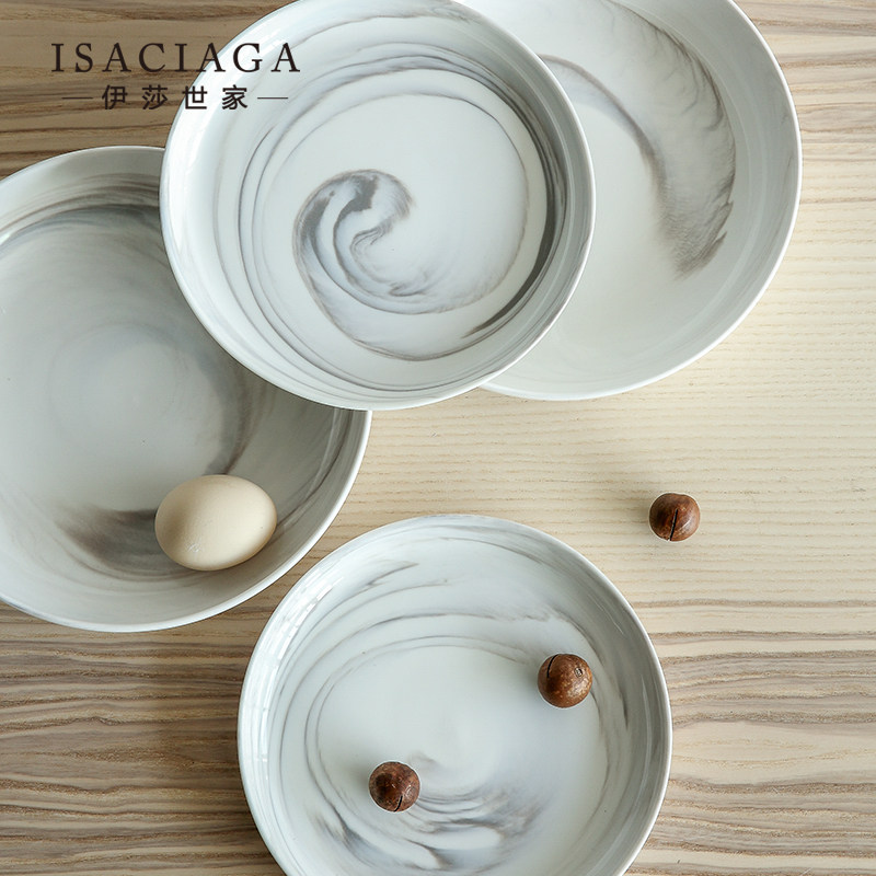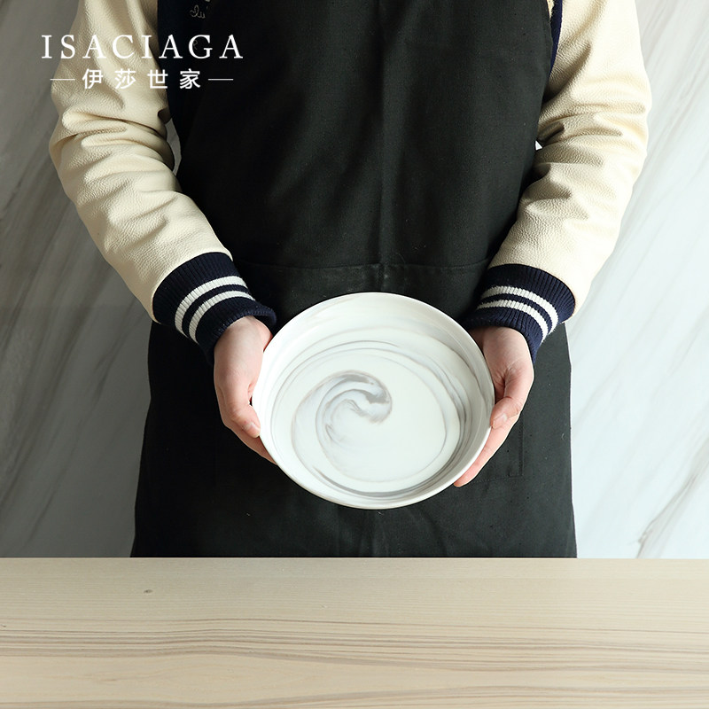韦斯利暖色调大理石纹陶瓷餐具盘子浅盘(8寸