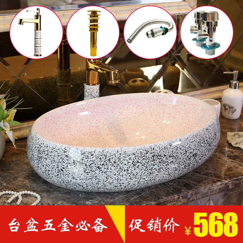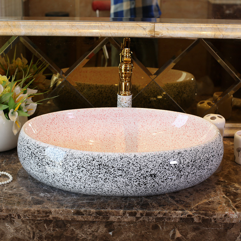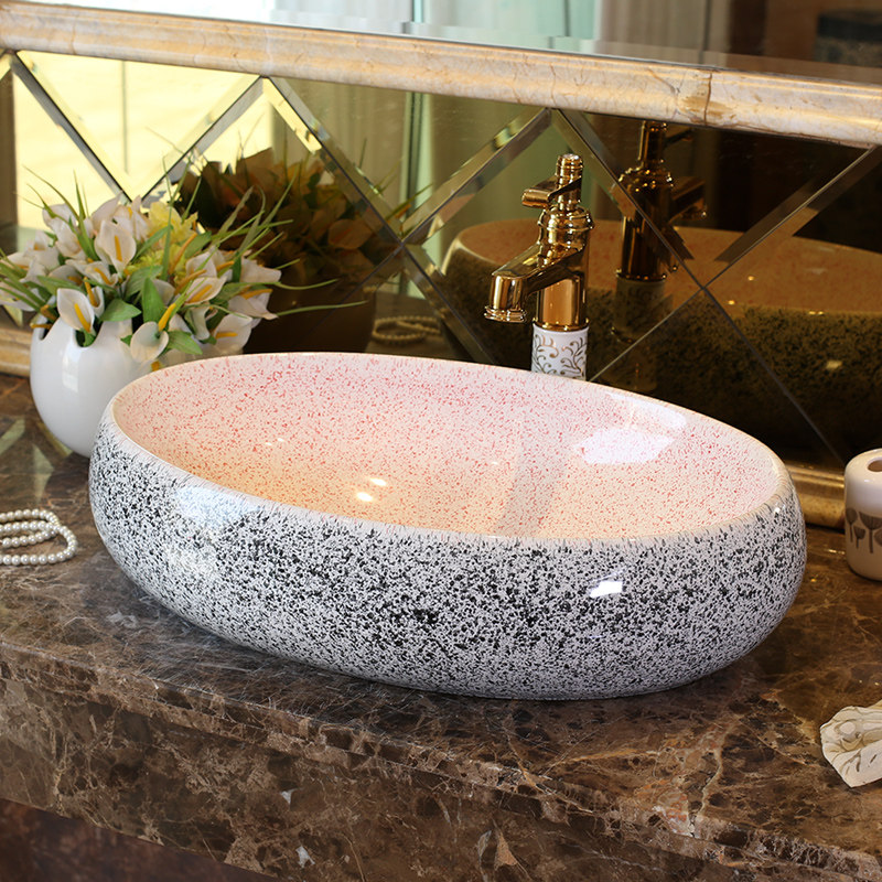 雨泉欧式仿大理石艺术台上盆陶粉色椭圆台上盆